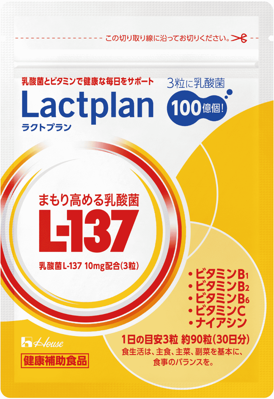 「ラクトプラン」はハウス食品グループが研究を重ねてきた独自の乳酸菌「まもり高める乳酸菌L-137」とビタミンB群(4種類)とビタミンCを配合したサプリメントです。