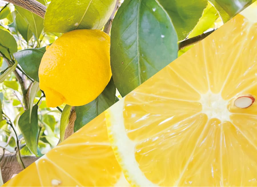 ビタミンC含有量を比べる際「レモン○個分」と言われるようにレモンはビタミンCの宝庫です。このほか疲労回復に効果があるクエン酸も豊富。また、香り成分のリモネンには血行促進、健胃、鎮静などの働きがあります。