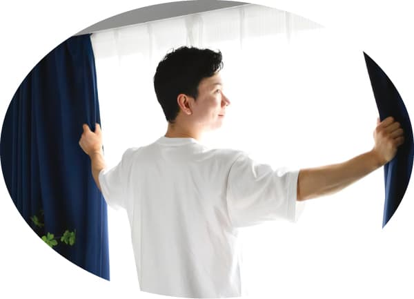 私たちの体は、朝起きてすぐ窓際に立ち15秒間光を目に入れると、活動のスイッチが入るといわれています。同時にその時点から14~16時間後に眠くなるように睡眠ホルモンも分泌されるそうです。朝にたっぷり光を浴び、夜は就寝1時間前から暗くするという習慣を身につけましょう。